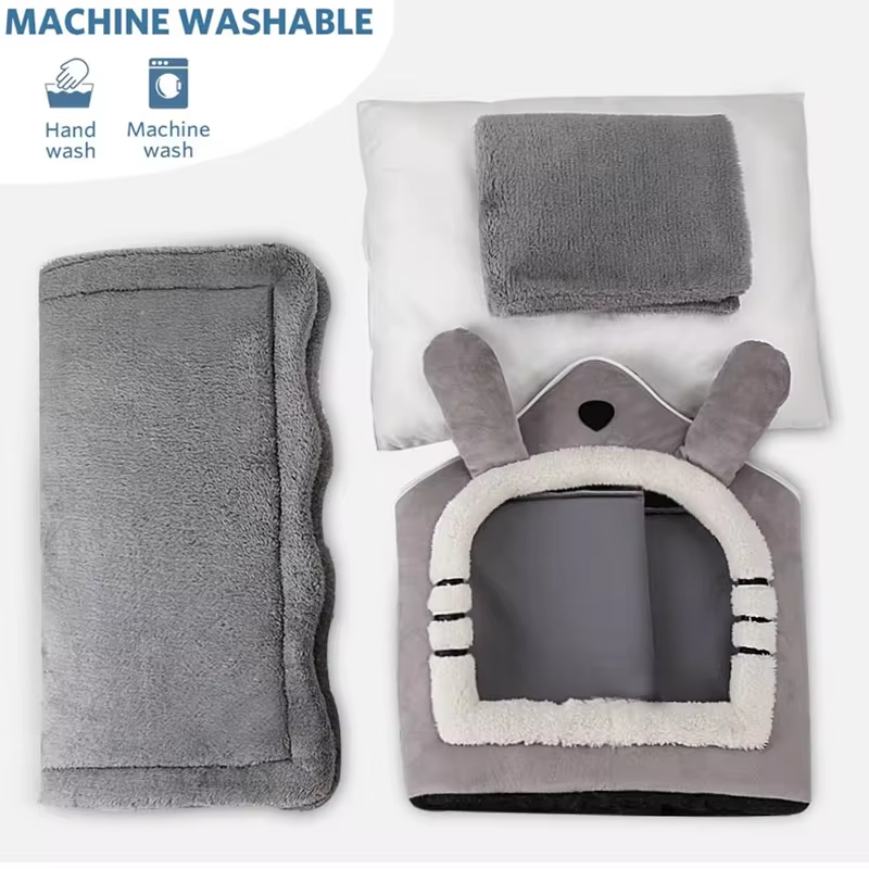 Easy Assembly: Multipurpose Use,House Shape, Detachable Top Zipper Design Is Convenient And Practical,Warmth To Sleep, And Comes With A Detachable Cushion-Soft And Thick Cushion, Double-Sided Cushion, Linen And Flannel Fabric, Suitable For All Seasons, Warm In Winter And Cool In Summer.